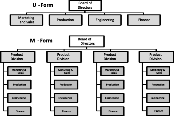 قدم تشاندلر مفهوم Multi-Divisional M-Form في طريقة بناء الشكل الهرمي للشركة.